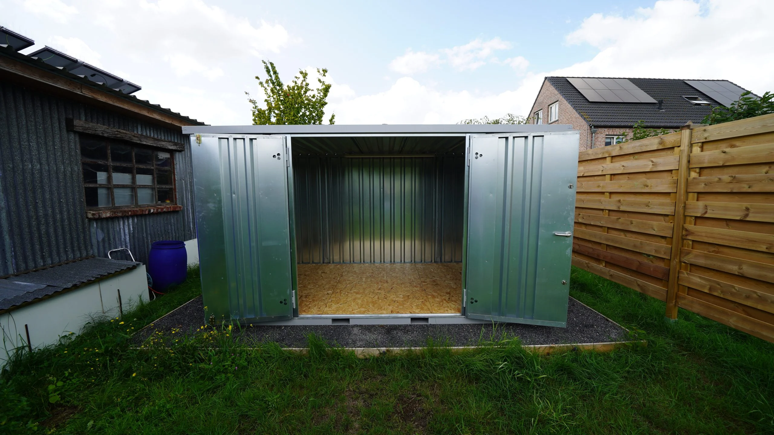 DémontableDimensions extérieures (LxBxH) : 3880 x 2140 x 2072 mmDimensions intérieures (LxlxH) : 3726 x 1990 x 1948 mmDimensions de la porte : (LxH) : 1 750 (813 + 937 mm) x 1849 mmSéparation pour passage de fourches : 850 mmConstruction entièrement autoportante, y compris le plancher