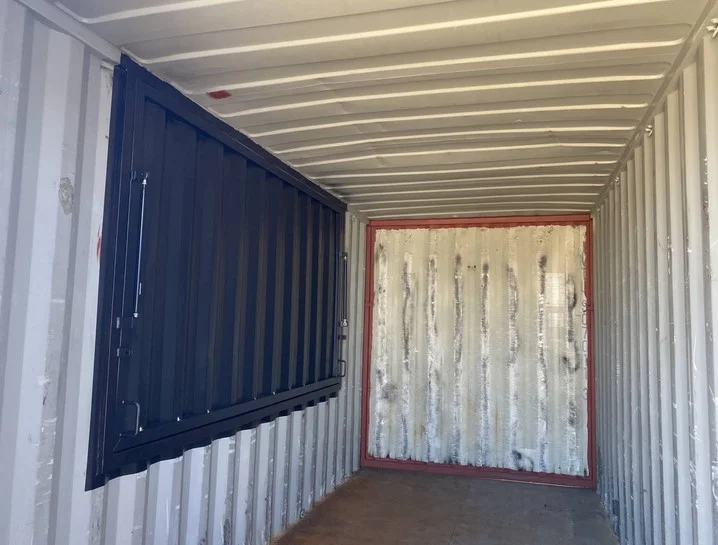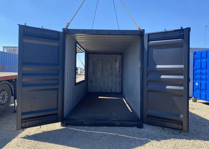 Beschreibung des modifizierten 20-Fuß-High-Cube-Gourmet-Containers mit Fenster und Luke Dieser 20-Fuß-High-Cube-Versandcontainer (HC) wurde speziell für den Gourmet-Einsatz modifiziert…