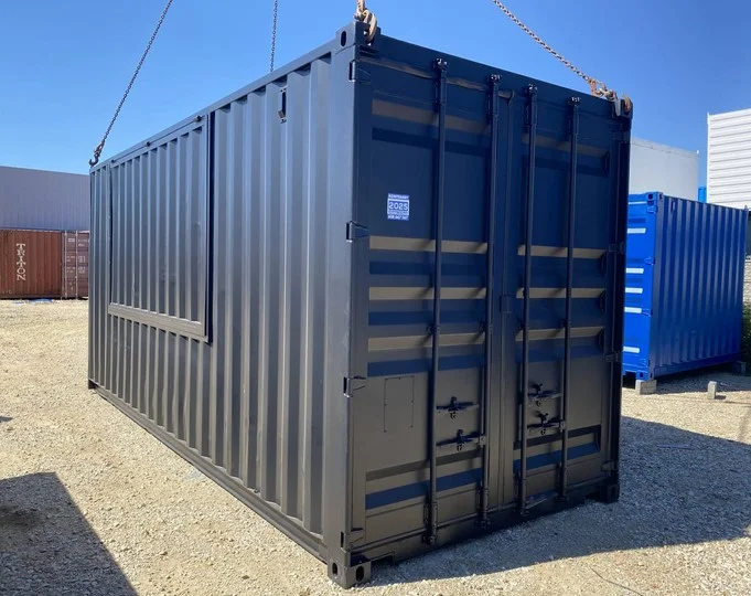 Beschreibung des modifizierten 20-Fuß-High-Cube-Gourmet-Containers mit Fenster und Luke Dieser 20-Fuß-High-Cube-Versandcontainer (HC) wurde speziell für den Gourmet-Einsatz modifiziert. Es bietet einen funktionalen und praktischen Raum, ideal für mobile Catering-Projekte oder Lebensmittelverkaufskioske. Spezifikationen des Containers: – Abmessungen: – Breite: 2,43 m